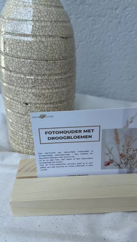 Blijvende Herinnering – Houten Fotohouder met Droogbloemen