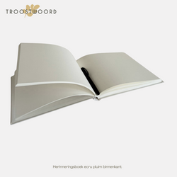 Dit boek ligt in een herinneringshoekje waar mensen de tijd kunnen nemen om iets neer te schrijven. Een herinnering, een wens, een warme gedachte… Elk woord is een stukje troost. Na verloop van tijd wordt het boek geschonken aan de familie van de overledene — als blijvend teken van verbondenheid.